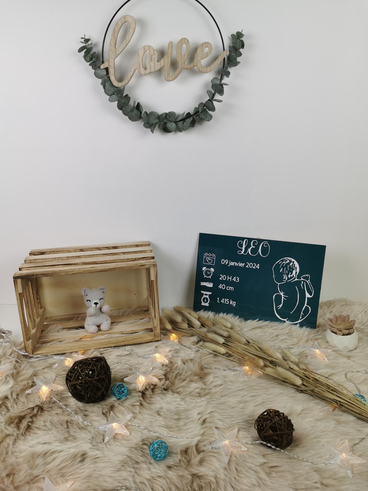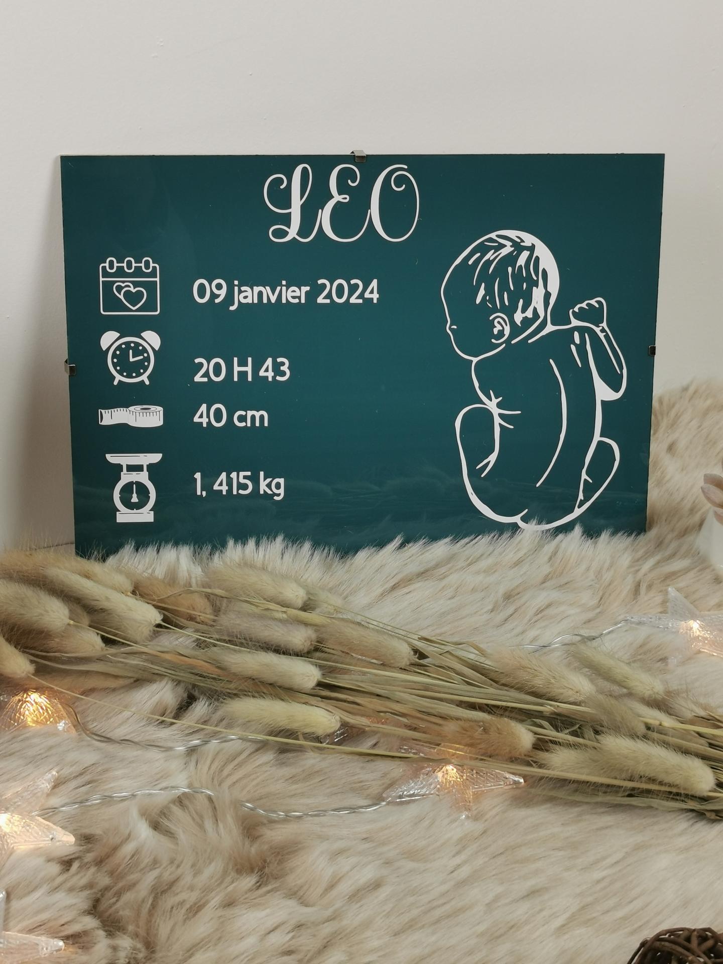 Notre joli cadre personnalisé marquera l'arrivée d'un nouveau-né en reprenant les données de naissance :