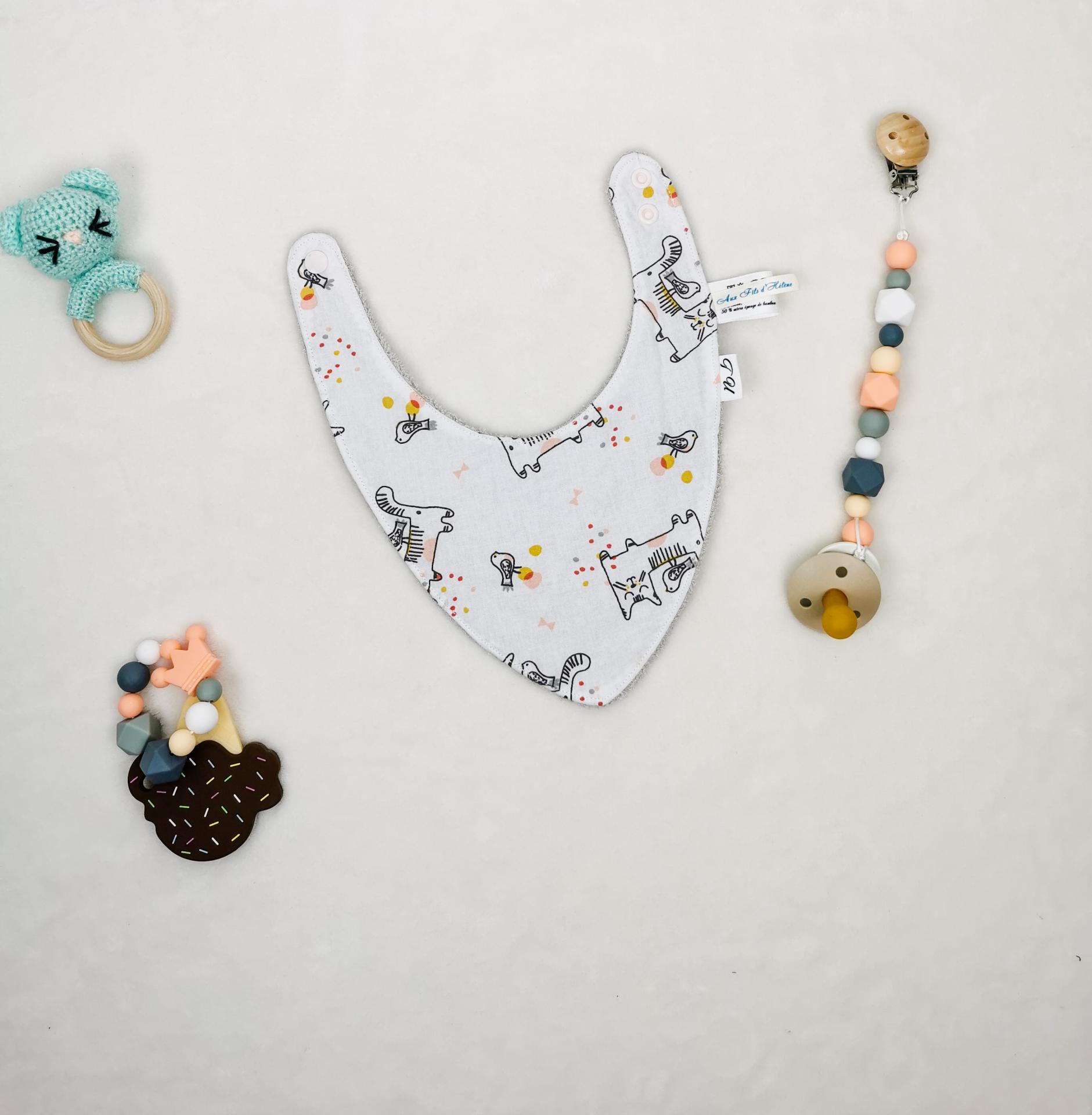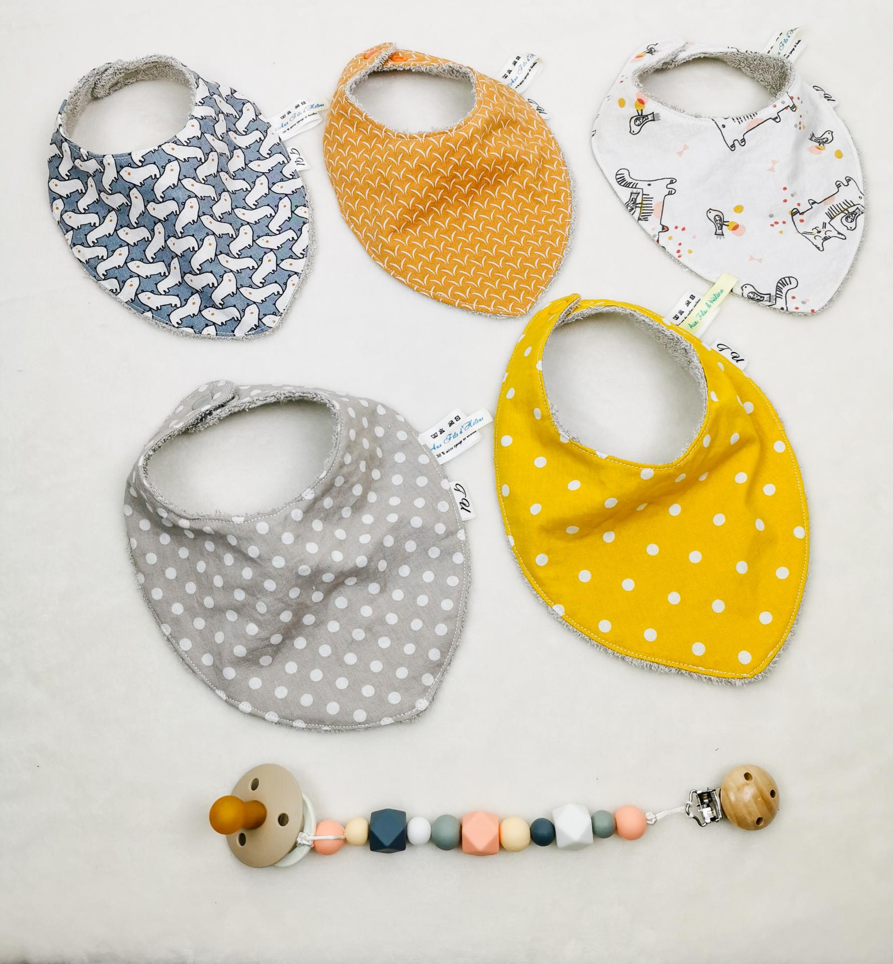 Nos jolis bavoirs bandana sont idéales pour vos enfants lors des phases de baves intenses lors des poussées dentaires. Elles leur seront utiles pour rester au sec tout en donnant une petite touche à leur tenue vestimentaire.