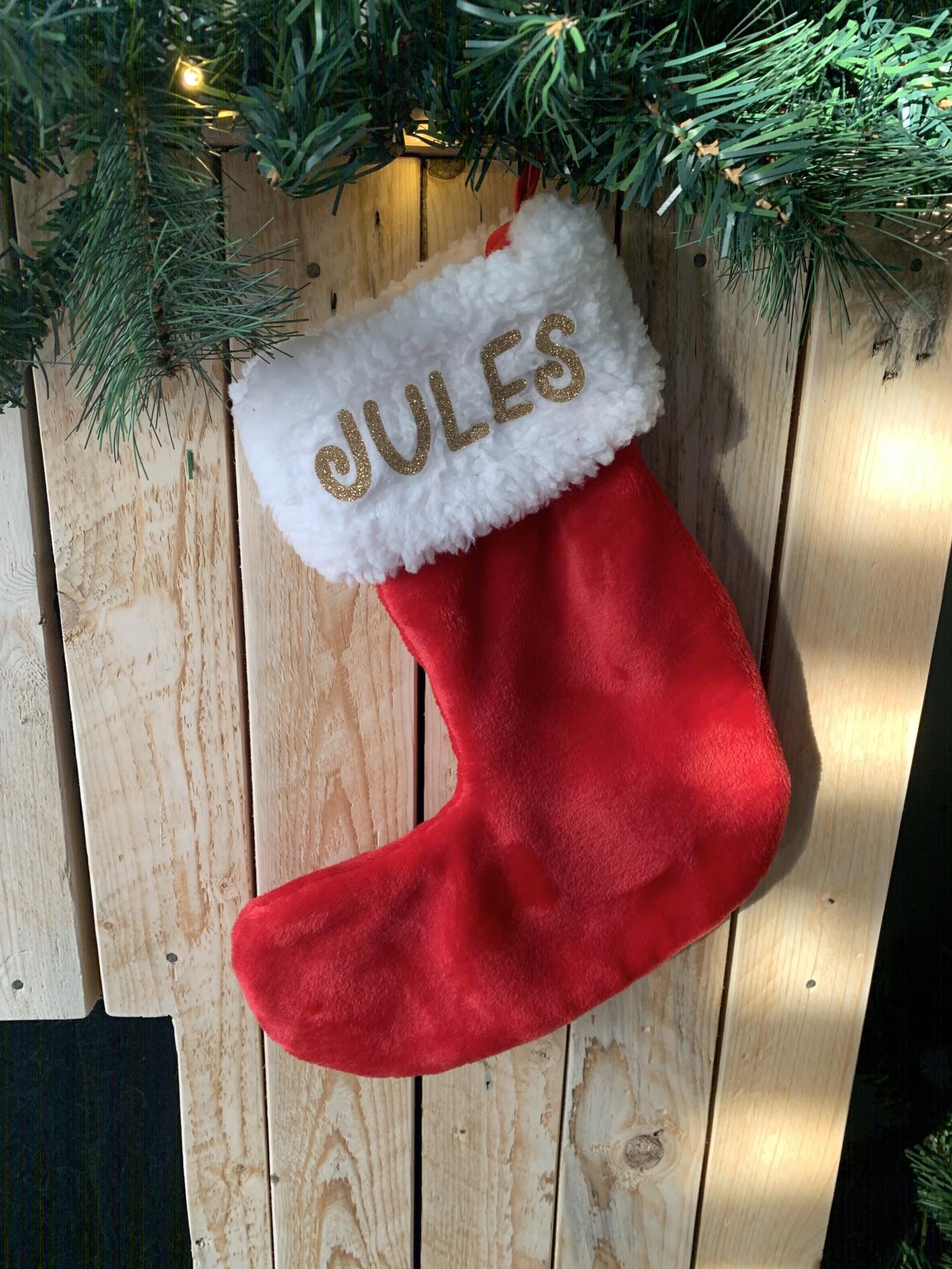 Nos chaussettes de Noël, fabriquées dans notre atelier, sont personnalisable avec un prenom. Elles seront le petits plus pour votre décoration de Noël : posée sur la cheminée ou accrochée au mur.