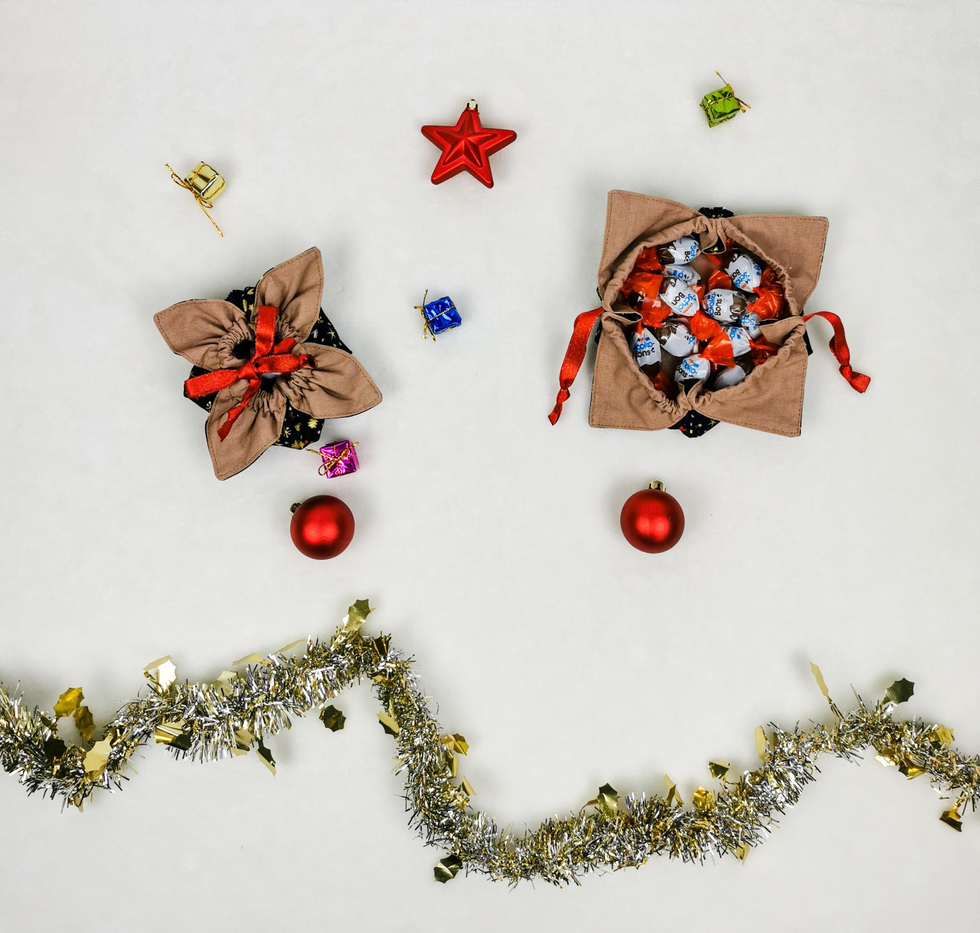 Nos pochons de Noël sont parfait pour y glisser de petits chocolats, par exemple, en complément d'un petit cadeau.